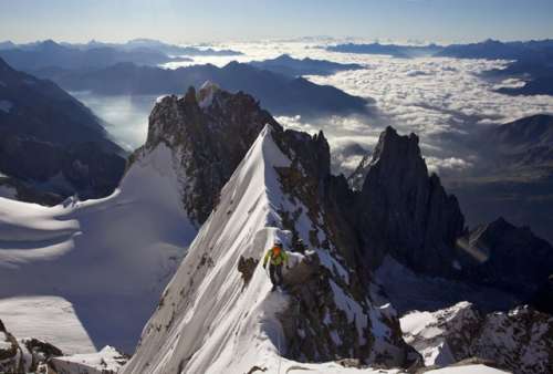 Ας μεταφερθούμε τώρα στα τεχνικά στοιχεία που χαρακτηρίζουν το όλο project. Η μια από τις δυο προσπάθειες της πρώτης χρονιάς ήταν η σόλο ανάβαση στο Mont Blanc από την Ιταλική πλευρά (Innominata), ξεκινώντας από τα 1.000 μέτρα υψόμετρο του Courmayer, ανεβαίνοντας μέχρι τα 3.600 και καταλήγοντας μετά μέσω κατάβασης της Γαλλικής πλευράς στο Chamonix. Η διαδρομή αυτή είναι φυσικά λιγότερο τεχνική από τις βορινές πλευρές των Eiger ή Matterhorn, αλλά είναι εκτεθειμένη, τεράστια σε μήκος και τελικά και λόγω μεγέθους ίσως και πιο επικίνδυνη συνολικά έτσι μινιμαλιστικά όπως την επιχείρησε ο Kilian. Την ολοκλήρωσε σε 8:43, με την ανάβαση να έχει γίνει σε 6:17. Απίστευτοι χρόνοι φυσικά, σε μια περιπέτεια που είχε διασχίσεις παγετώνα, αναρρίχηση, σαθρά εδάφη και περάσματα με πολύ ρίσκο σε γραμμές χιονιού (“A fine line” – όπως και ο τίτλος της ταινίας) σε κορυφογραμμές.