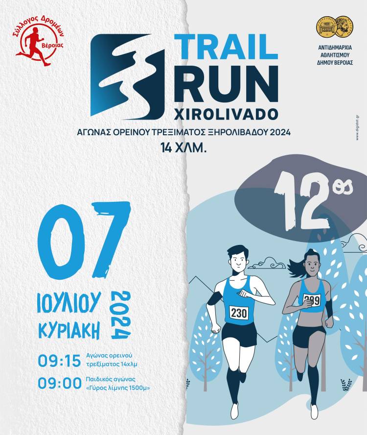 Ο Σύλλογος Δρομέων Βεροίας, με την Αντιδημαρχία Αθλητισμού του Δήμου Βεροίας, διοργανώνουν τον 12ο Αγώνα ορεινού τρεξίματος Ξηρολιβάδου και του παιδικού Αγώνα 1500μ ηλικιών (7 ετών έως 15 ετών) Τον αγώνα υποστηρίζουν ο Συνεταιρισμός Διαχείρισης Συνιδιοκτησίας Ξηρολιβάδου και ο Π.Ο.Ξ. (Πολιτιστικός Όμιλος Ξηρολιβάδου).