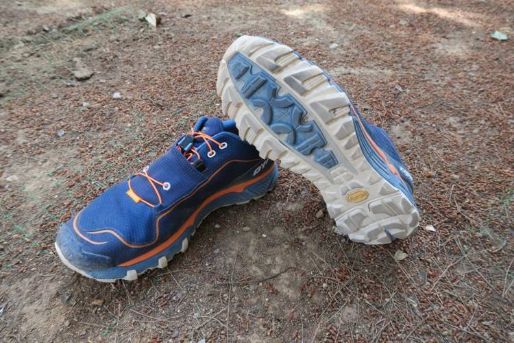 Ένα από τα πιο δυνατά χαρακτηριστικά του Dynafit Ultra Pro δεν είναι άλλο από την μεσόσολά του επαναλαμβάνοντας την επιτυχημένη συνταγή του Feline Ultra ίδια και απαράλλακτη. Και εδώ η Dynafit έχει χρησιμοποιήσει 2 layers από υλικό τύπου EVA σε όλο το παπούτσι, χαρακτηριστικό που το έχει βαφτίσει DUO Motion. Τα δύο αυτά layers είναι εμφανή στην παρακάτω φωτογραφία. Η πορτοκαλί μεσόσολα (που αναγράφει και το χαρακτηριστικό Duo Motion) που βρίσκεται σε άμεση επαφή με το πόδι είναι λίγο πιο μαλακή για να προσδώσει άνεση, ενώ η κορυφαία συμπεριφορά του παπουτσιού σε πέτρες, βράχια και όλα τα ωραία που συναντούμε στα ελληνικά μονοπάτια οφείλεται στο μπλε layer που είναι πιο σκληρό και ανθεκτικό. Δεν υπάρχει κάποιο «rockplate» στο εσωτερικό της μεσόσολας αλλά πιστέψτε μας, δεν θα το χρειαστείτε! Μπορείτε να πατήσετε άφοβα σε οποιαδήποτε αιχμηρή και σκληρή επιφάνεια και το πέλμα σας θα βγει αλώβητο. Παρόλη την απουσία του «rockplate», το πάτημά του χαρακτηρίζεται σκληρό σε όλο το πέλμα ιδιαίτερα στην φτέρνα, ενώ η αίσθηση της «ακαμψίας» θα δυσκολέψει λίγο όσους αρέσκονται να διαβάζουν με λεπτομέρεια το έδαφος κάτω από τα πόδια τους.