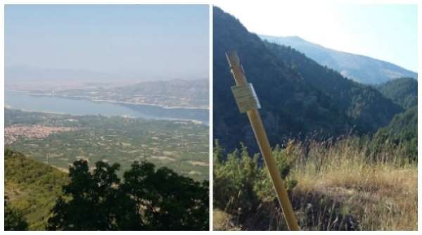 Αφήνουμε το μονοπάτι αυτό και συνεχίζουμε μέχρι τη διασταύρωση που θα συναντήσουμε παρακάτω όπου και πηγαίνουμε δεξιά. Από εδώ και πέρα δεν υπάρχει κάποιο άλλο σημείο που μπορεί να μας μπερδέψει και περνώντας παραπάνω δίπλα από ένα κιόσκι, στα δεξιά μας, ουσιαστικά ξεκινάει ένα μονοπάτι που ανηφορίζει διαρκώς τραβερσάροντας πάνω στην πλαγιά. Όπως είπα και προηγουμένως η σηματοδότηση που ακολουθούμε είναι τα κίτρινα πασαλάκια με τις σχετικές πληροφορίες για κατεύθυνση, υψόμετρο, απόσταση και χρόνο (είναι πάντα σχετικός) που απομένει καθώς και γεωγραφικό μήκος και πλάτος.