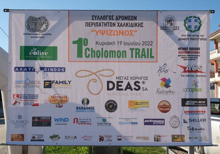 Ο Σύλλογός μας, Σύλλογος Δρομέων Περιπατητών Χαλκιδικής "Υψίφωνος" πραγματοποίησε με επιτυχία την Κυριακή 19 Ιουνίου 2022 το πρώτο CHOLOMON TRAIL ! Μία όμορφη εκδήλωση ορεινού τρεξίματος στους πρόποδες του όρους Χολομώντα, στον Πολύγυρο Χαλκιδικής. Ολα τα μέλη του Συλλόγου δουλέψαμε με αγάπη και μεράκι για τη δημιουργία και την πραγματοποίηση της διοργάνωσης αυτής.