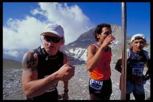 Ο καιρός έδειχνε ότι δεν θα δημιουργούνταν απρόοπτα, παρά τις περί αντιθέτου προβλέψεις της ΕΜΥ. Σε μια τόσο ιδιαίτερη όμως περιοχή –όπως ο Όλυμπος- ακόμα και οι ακριβείς προβλέψεις καμιά φορά δεν μπορούν να έχουν ιδιαίτερη αξία. Λίγα μικρά σύννεφα μόνο έκαναν την εμφάνισή τους πάνω από τις κορυφές του βουνού, αποτελώντας ένα πιθανό σημάδι αλλαγής του καιρού προς το τέλος του αγώνα, το απόγευμα. Η μάχη των αθλητών συνεχιζόταν όσο ο ανήφορος έδειχνε να μην τελειώνει. Για τους περισσότερους -άσχετα με τη θέση τους στην ουρά του αγώνα- ήταν μια προσωπική μάχη, ένας αγώνας αντοχής μέχρι να τελειώσει ο «Γολγοθάς» των 21 χιλιομέτρων σε υψόμετρο 2780 μέτρων, στο Θρόνο του Δία. Οι 7 Σταθμοί που ήταν απλωμένοι σ αυτό το μήκος θα έπαιζαν καθοριστικό ρόλο για τη συνέχιση της επίπονης προσπάθειας των εκατό και πλέον αθλητών που συνέχιζαν. Η ενθουσιώδης συμμετοχή των μελών του ΕΟΣ Λιτοχώρου, που ανέλαβαν όλους σχεδόν τους Σταθμούς της διαδρομής, ήταν ένας παράγοντας που μέτρησε στην αίσια έκβαση του ίδιου του αγώνα (σύμφωνα με τις εκτιμήσεις των ίδιων των αθλητών, ήταν πέρα από κάθε προσδοκία οι υπηρεσίες που τους προσφέρθηκαν στους Σταθμούς Τροφοδοσίας).