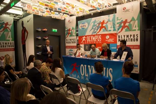 Στην εκδήλωση μίλησαν ο Αριστείδης Νίκας, Πρόεδρος του Olympus Marathon, η Αντιπεριφερειάρχης Πιερίας και Θεματική Αντιπεριφερειάρχης Πολιτισμού-Αθλητισμού-Παιδείας της Περιφέρειας Κεντρικής Μακεδονίας, Σοφία Μαυρίδου, ο Δήμαρχος Δίου-Ολύμπου, κος Κώστας Δημόπουλος και ο Πρωταθλητής Μαραθωνοδρόμος Δημήτρης Θεοδωρακάκος (Salomon Hellas). Την εκδήλωση συντόνισε ο Δημήτρης Ανδριόπουλος εκπρόσωπος του Runner Store-συνδιοργανωτή του αγώνα.