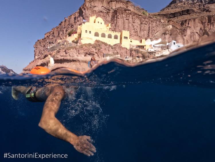 Μια από τις πιο εντυπωσιακές δράσεις του προγράμματος θα είναι η κολυμβητική διαδρομή open water που θα διεξαχθεί το πρωί της Παρασκευής 10 Οκτωβρίου. Οι συμμετέχοντες θα διανύσουν μια ξεχωριστή διαδρομή 2,4 χλμ. (1,5 μίλι), ξεκινώντας από το Ηφαίστειο και τερματίζοντας στο παλιό λιμάνι των Φηρών, έχοντας ως φόντο την επιβλητική θέα του νησιού. Πρόκειται για μια διαδρομή που παρέχεται στους συμμετέχοντες μόνο μια φορά τον χρόνο με άδεια από την Περιφερειακή Υπηρεσία Τουρισμού Κυκλάδων και με τη σύμφωνη γνώμη του Λιμεναρχείου Θήρας. Τα νερά με βάθος που φτάνουν μέχρι και τα 400 μέτρα και θερμοκρασία γύρω στους 22-23°C, προσφέρουν τις ιδανικές συνθήκες για έναν απολαυστικό αγώνα. Η διοργάνωση δίνει ιδιαίτερη έμφαση στην ασφάλεια των αθλητών, με την παρουσία εξειδικευμένων ναυαγοσωστών και ναυαγοσωστικών σκαφών καθ’ όλη τη διάρκεια της διαδρομής. Στην ασφάλεια του αγώνα θα συμβάλλουν επίσης οι επαγγελματίες ναυαγοσώστες και τα σκάφη της Lifeguard Patrol, που θα φροντίσουν και για τον απαραίτητο φαρμακευτικό και ιατρικό εξοπλισμό. Την κολύμβηση θα υποστηρίξουν ακόμα με σκάφη και προσωπικό η Ένωση Λεμβούχων Σαντορίνης, η Caldera Yachting και ο Ναυτικός Όμιλος Σαντορίνης, ενώ η διοργάνωση θα εξασφαλίσει για όλους τους αθλητές σωσίβιο ασφαλείας, παρέχοντας επιπλέον προστασία σε κάθε συμμετέχοντα. Η χρήση ατομικού πλωτήρα είναι υποχρεωτική για όλους. Τεχνικός Διευθυντής του αγώνα είναι ο κορυφαίος προπονητής Νίκος Γέμελος, με πολυετή εμπειρία και σημαντικές διακρίσεις σε Ολυμπιακούς αγώνες και παγκόσμια πρωταθλήματα.