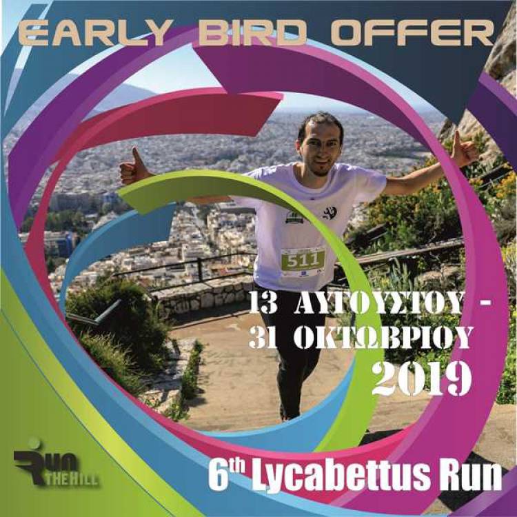 Η Οργανωτική Επιτροπή του 6ο Lycabettus Run, υπενθυμίζει στους ενδιαφερόμενους δρομείς που θέλουν να συμμετέχουν στην διοργάνωση, ότι η περίοδος early bird, για προνομιακή τιμή εγγραφής λήγει το βράδυ της 31ης Οκτωβρίου. Κάντε τώρα την εγγραφή σας και εξασφαλίστε μία θέση στον αγώνα αλλά και την ευκαιρία να ζήσετε μία ιδιαίτερη δρομική εμπειρία την Κυριακή 23 Φεβρουαρίου στο λόφο του Λυκαβηττού. Λίγες μόνο ημέρες έμειναν για να πραγματοποιήσετε την εγγραφή σας στην προνομιακή τιμή των 12 € ανά δρομέα για κάθε ατομικό αγώνισμα και 11€ ανά δρομέα για συμμετοχή στο αγώνισμα της σκυταλοδρομίας (Σκυταλοδρομία Ανδρών – Γυναικών - Μικτή).