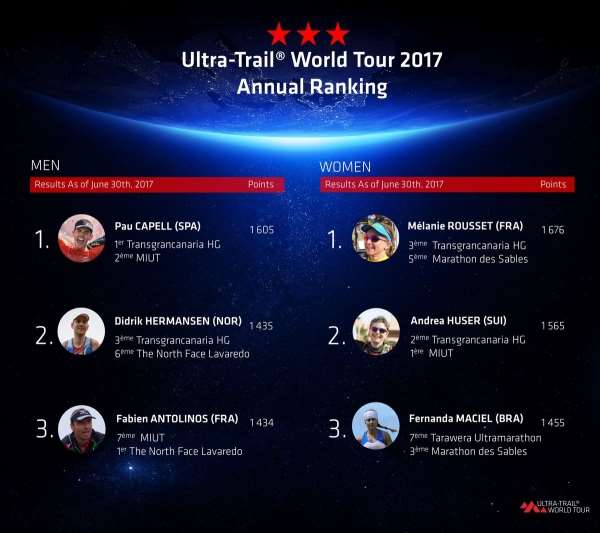 On the men side, Pau CAPELL (SPA) is not ready to let his first place this year and he remains for now the king of the UTWT Annual Ranking. Didrik HERMANSEN (NOR) jumps to the second place and Fabien ANTOLINOS (FRA) directly enters at the third place thanks to his victory last week.