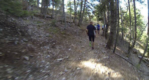 Παραδοσιακά σε όλες τις διοργανώσεις την εκκίνηση την έδινε ο παπα-Θέμης με την καραμπίνα του, κάτι που έγινε και φέτος. Πρώτοι ξεκινήσαμε οι δρομείς του μεγάλου αγώνα των 21 χιλιομέτρων αρχικά σε έναν κατηφορικό ασφάλτινο δρόμο. Γρήγορα όμως και μετά από 2 σχεδόν χιλιόμετρα, αφήσαμε την καυτή άσφαλτο για να χωθούμε στην αγκαλιά του ελατοσκέπαστου βουνού. Η δροσιά των ελάτων και του υψομέτρου μετρίασε κάπως την αφόρητη ζέστη η οποία σίγουρα ήταν πιο υποφερτή για εμάς από όσους επέλεξαν να μείνουν στο λεκανοπέδιο. Η διαδρομή φέτος ακολουθούσε μία ελαφρώς διαφορετική χάραξη από τις προηγούμενες φορές με λιγότερο δρόμο και περισσότερο μονοπάτι, αφήνοντας όμως τα υπόλοιπα χαρακτηριστικά ίδια.