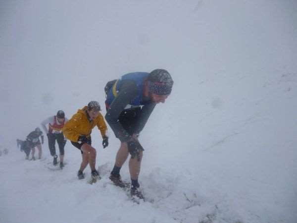 Ξεκινάει ο παγωμένος αγώνας των 10km και της συνολικής θετικής ανάβασης δύο κορυφών, περίπου χιλίων μέτρων! Δεν έβλεπα κόκκινες κορδέλες στο μονοπάτι. Αυτή τη φορά το ήξερα, οι ορεινοί αγώνες της Σκωτίας δεν είναι σηματοδομημένοι. Χωρίς πυξίδα, χάρτη και κατάλληλο εξοπλισμό, δίχως πολλές απαιτήσεις και με αρκετό σεβασμό στο βουνό, δεν υπερεκτίμησα τις δυνάμεις μου και υπομονετικά, με μετρημένες προσπεράσεις, και μόνο στόχο την απόλαυση και τον τερματισμό, ξεκινήσαμε την ανάβαση.