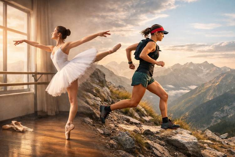 Στις κατηφόρες ειδικά, το μπαλέτο προσφέρει κάτι πολύ ουσιαστικό, γιατί μαθαίνει τον έλεγχο χωρίς φρένο. Πολλοί δρομείς σφίγγουν, φρενάρουν και κατεβαίνουν με ένταση, φορτώνοντας υπερβολικά γόνατα και τετρακέφαλους. Ο χορευτής έχει μάθει να απορροφά το φορτίο με ευθυγράμμιση και έλεγχο και όχι με σύσπαση, και αυτό στο βουνό σημαίνει πιο ομαλές κατηφόρες, λιγότερα χτυπήματα και καλύτερη διαχείριση της κόπωσης.