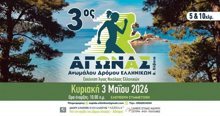 Με μεγάλη μας χαρά λοιπόν έπειτα από την τεράστια επιτυχία των δύο προηγούμενων ετών και μένοντας πιστοί στο ραντεβού που δώσαμε περισυ,ο σύλλογος ΑΣΠΙΔΑ ανακοίνωνει την διοργάνωση του?♂️ 3ου Αγώνα Ανωμάλου Δρόμου Ελληνικών υπό την αιγίδα του Δήμου Ιστιαίας -Αιδηψου.