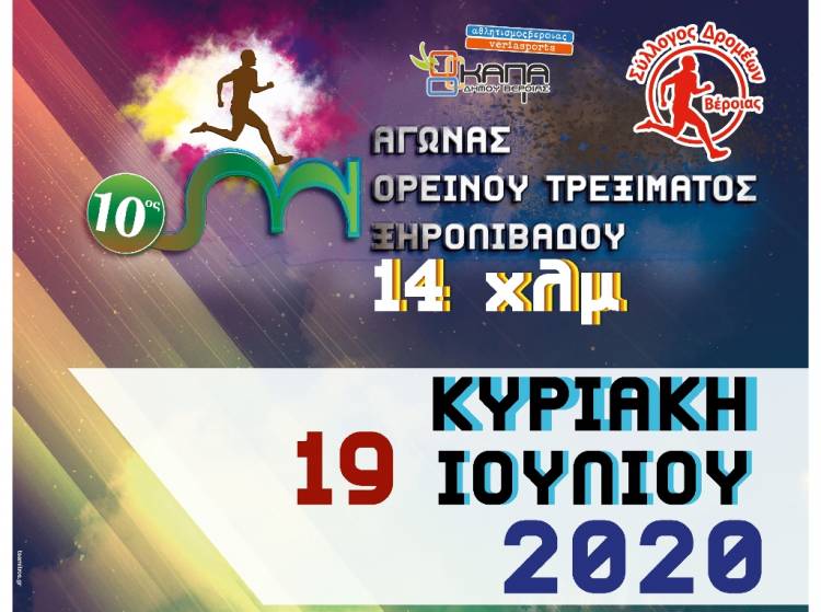 Ο Σύλλογος δρομέων Βέροιας και το ΚΑΠΑ του Δήμου Βέροιας ανακοινώνουν την ημερομηνία του ''10ου αγώνα ορεινού τρεξίματος Ξηρολιβάδου 14χλμ'' και ορίζουν ως ημέρα διεξαγωγής του αγώνα την Κυριακή 19 Ιουλίου 2020.