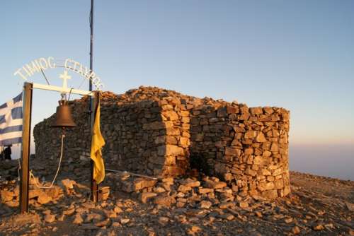 Τρεις ώρες μετά την εκκίνησή μας, και αφού πια βαδίζουμε στο απόλυτο σκοτάδι, ο οδηγός μας αναφωνεί αυτό που τόσο θέλαμε να ακούσουμε, "να την η κορυφή, να το εκκλησάκι, φτάσαμε!" Σε λίγο, οι πρώτοι έξι από τους έντεκα φτάναμε στην κορυφή, αντικρίζοντας ένα πλινθόκτιστο εκκλησάκι με μία μεγάλη καμπάνα και την ελληνική σημαία πλάι της να κυματίζει. Η τιμή να χτυπήσει την καμπάνα, έγινε σε έναν από μας που βρέθηκε για πρώτη φορά εκεί, αν και ντόπιος. Μόλις ο ήχος της άρχισε να γεμίζει τον αέρα, συμπαγής και δυνατός, σκέφτηκα να κοιτάξω γύρω μου. Ένιωσα δέος. 2.456 μέτρα υψόμετρο ήταν αυτά! "Θα το απολαύσω το πρωί, με το πρώτο φως" σκέφτηκα, και πήγα να συναντήσω τους άλλους που είχαν αρχίσει ήδη της ετοιμασίες της διανυκτέρευσης μέσα στην ασφάλεια της μικρής πέτρινης εκκλησίας.