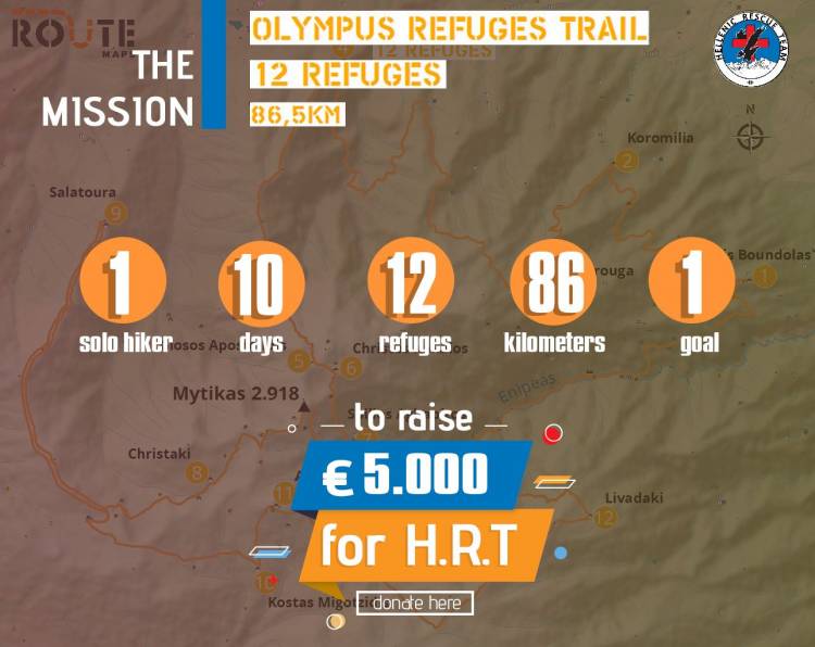Μετά από 14 ημέρες μοναχικής πορείας στο βουνό των θεών, τον Όλυμπο, ο εθελοντής της Ελληνικής Ομάδας Διάσωσης, Λορέντζο Νεράντζης, ολοκλήρωσε ένα εγχείρημα που πραγματοποιήθηκε για πρώτη φορά στην Ελλάδα. Με ένα σόλο ορειβατικό ταξίδι κατάφερε να ενώσει τα 12 καταφύγια του ψηλότερου βουνού της χώρας, έχοντας ως στόχο να ευαισθητοποιήσει όσους ασχολούνται με την ορειβασία για τη σημασία της πρόληψης και της σωστής προετοιμασίας, αλλά, ταυτόχρονα, να αναδείξει το ρόλο της Ελληνικής Ομάδας Διάσωσης στην ορεινή διάσωση στην Ελλάδα.